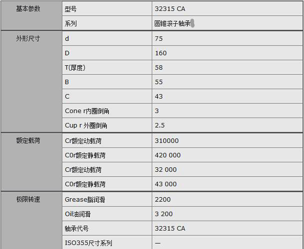 NSK圓錐滾子軸承外形尺寸基本參數: